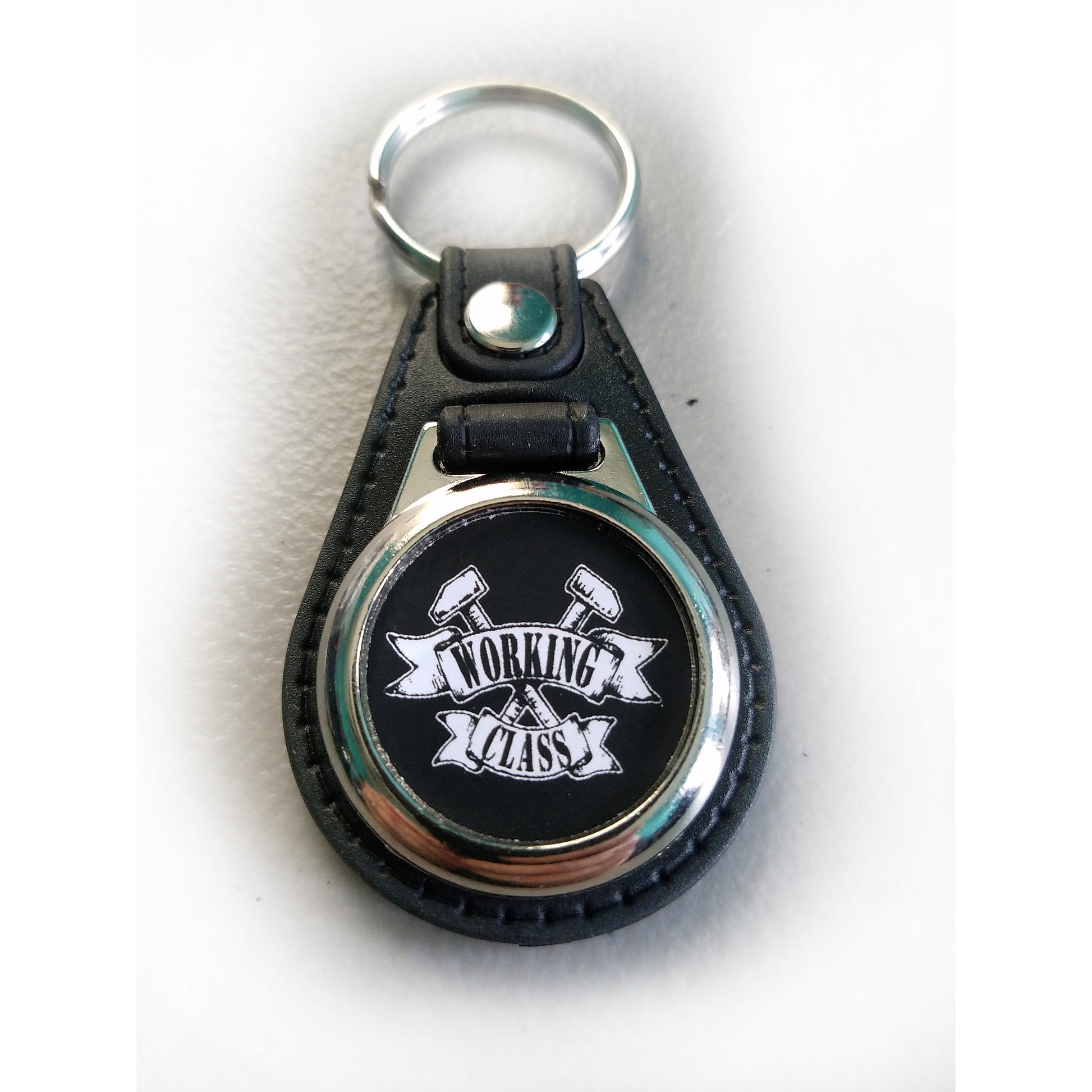 Choice Metal Oval: This metal Key Ring features a double sided image of a Crossed Hammers and a Banner that says "Working Class" Image is on both sides Paper under an acrylic disc. Insert Size: 25 mm circle (~0.98 inch diameter) Dimensions: 43 x 33 mm